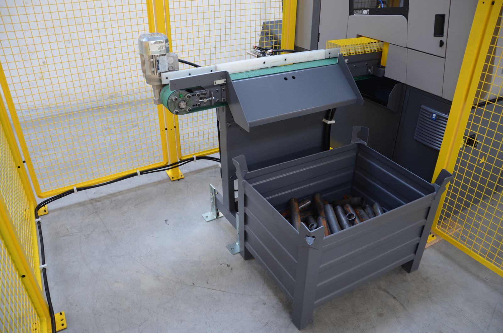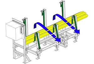 Çıkış konveyörü, uzun boylu malzeme kesimlerinizde malzemenin bükülmeden aynı doğrultuda sağlıklı kesiminin yapılmasını sağlar. Sağ / Sol ve ön tahliye seçenekleri vardır. Kesilen malzemenizin uç/artık parça ayırımını yapar. Güvenlik Standartları gereği işçi güvenliği açısından uzun malzeme kesim işlemlerinde kullanılması mecburidir.